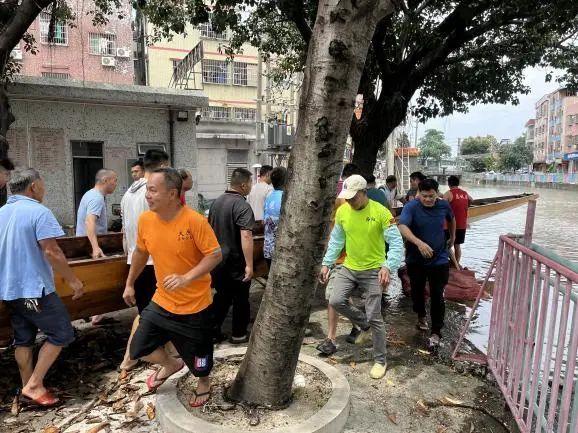 在村内腾龙苑旁河道,老一辈队员带领青年运动员完成沉睡龙舟的打捞、清洁、加固及桐油涂刷工作,并将传统龙、标准龙等多艘龙舟送入水中。这一延续百年的仪式不仅是对龙舟文化的敬畏,更通过“以老带新”的传承模式,让团结协作、奋勇争先的精神在新一代队员中扎根。