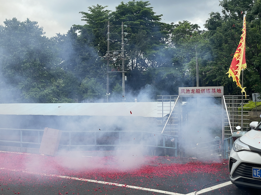 凤池村龙船训练基地热闹非凡。