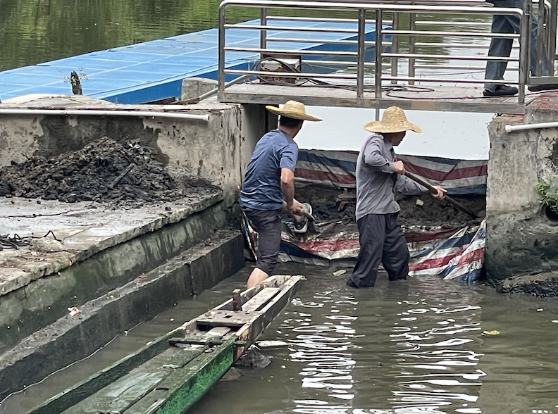 村民将龙船坞出入口的泥沙进行清除
