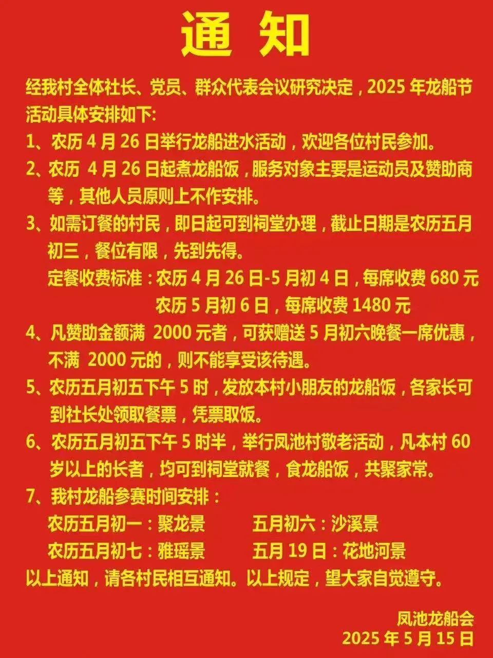 据了解,去年凤池村曾在沙溪景夺得传统龙项目第二名的好成绩,今年龙船会的目标是保二争一。