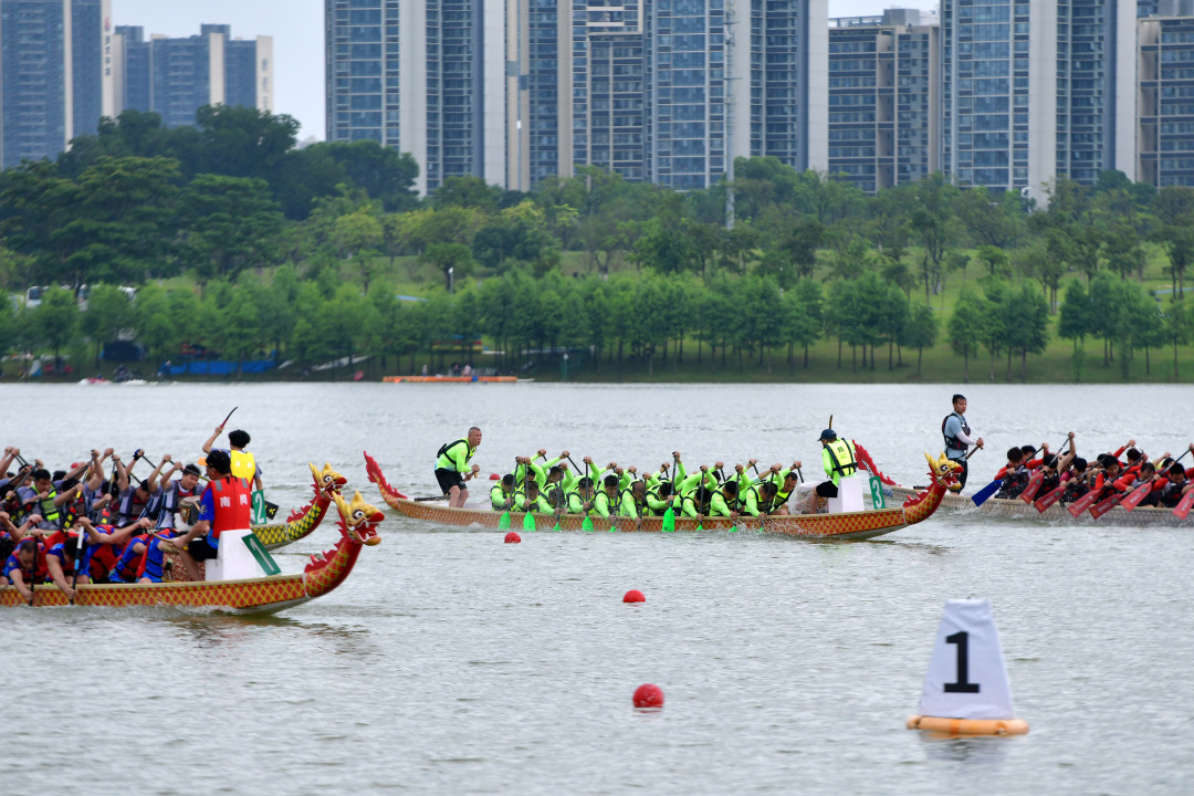 九龙湖畔,随着锣鼓声起,一支支龙舟队犹如离弦之箭,向终点发起冲刺,观众席响起阵阵加油呐喊声。值得关注的是,赛事举办地一旁,是距今已有四千余年的陂头岭遗址。飞速向前划过的龙舟,静静安坐的陂头岭遗址,仿佛实现了一场穿越时空的对话,历史遗迹得到完好保存,古老传统的赛龙舟习俗在现代得到传承与发扬,焕发生机活力。