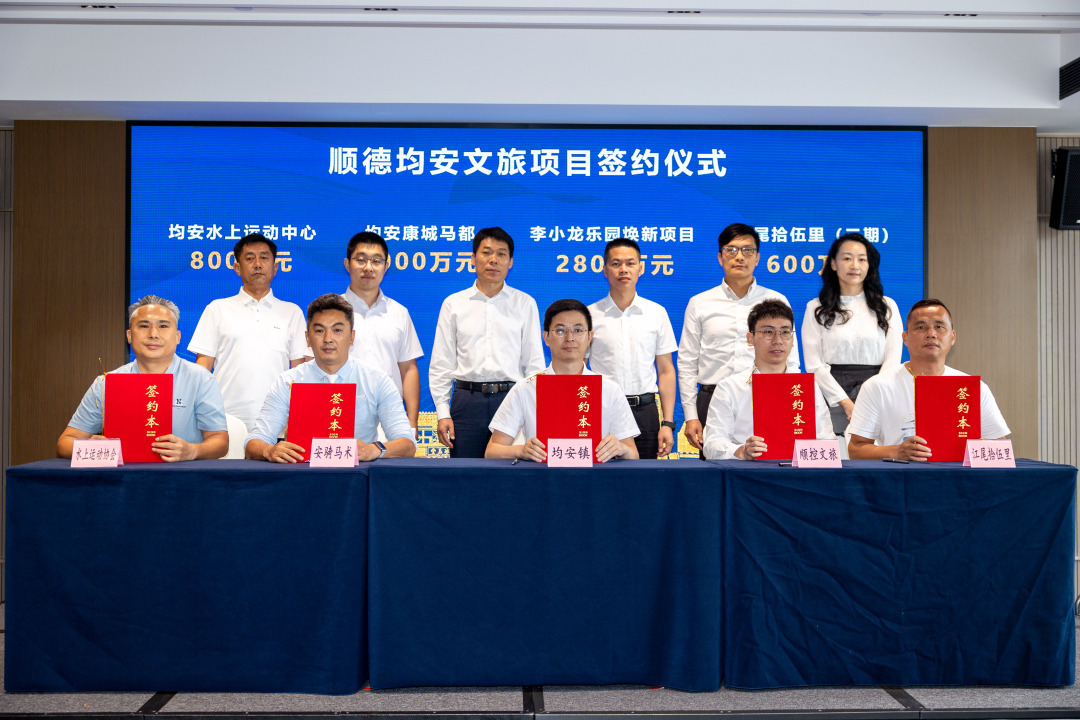 值得关注的是,活动现场,同步举行了均安文旅项目签约仪式,均安镇政府与江尾拾伍里(二期)项目、李小龙乐园焕新项目、岭南马都项目、均安水上运动中心项目等4个重点文旅项目完成集中签约,签约总金额达7200万元!