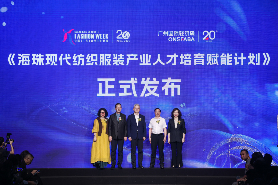此外,本次大会正式发布了《海珠现代纺织服装产业人才培育赋能计划》(简称:“时尚十条”),该计划将充分发挥中国(广东)大学生时装周的平台势能,深度融合“百万英才汇南粤”行动计划,推动海珠人工智能大数据与现代纺织服装产业优势叠加,通过打造“青年人才海珠行”研学品牌、组建“政产学研用”联动的纺织服装产业联盟、筹建现代纺织服装产业研究院、办好集城市推介和政策发布等功能于一体的产业大会、发挥数字营销生态资源优势、实施时尚产业工匠培育计划等举措,打造服装纺织产业全国赋能中心,全力建成时尚人才集聚高地、纺织产业融合高地、数智赋能应用高地、产业匠师引领高地,为纺织服装产业高质量发展赋能。
