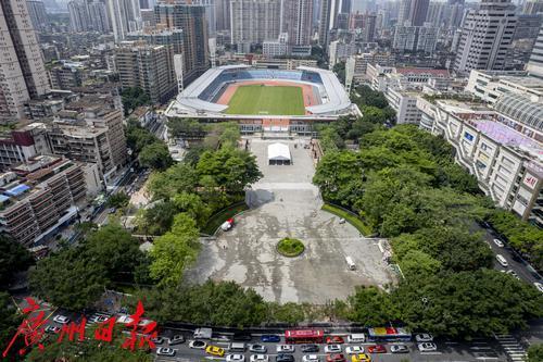 5月19日摄,广东省人民体育场和英雄广场。
