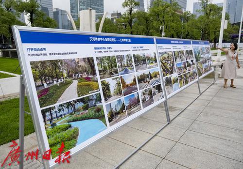5月19日摄,天河体育中心等周边精致街区改造前后对比展示。