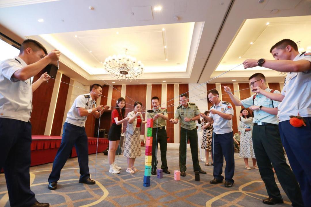 从“无敌风火轮”到“同心塔”,再到“一圈到底”,联谊活动中一系列妙趣横生的小游戏让现场洋溢着欢声笑语。军地青年们在协作中迅速破冰,心动指数直线“飙升”。部队官兵、地方青年的才艺表演引发全场热烈掌声,气氛走向高潮。