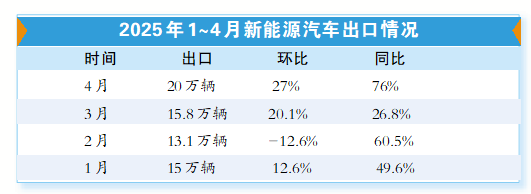 从出口结构看,根据中国汽车工业协会数据,1~4月新能源汽车出口64.2万辆,同比激增52.6%,新能源车型在出口总量中占比突破33%,插电混动(PHEV)同比增速更超150%,传统燃油车出口则同比下滑7.9%,出口结构的显著变化,显示中国汽车出口有望进一步从规模扩张到技术输出。