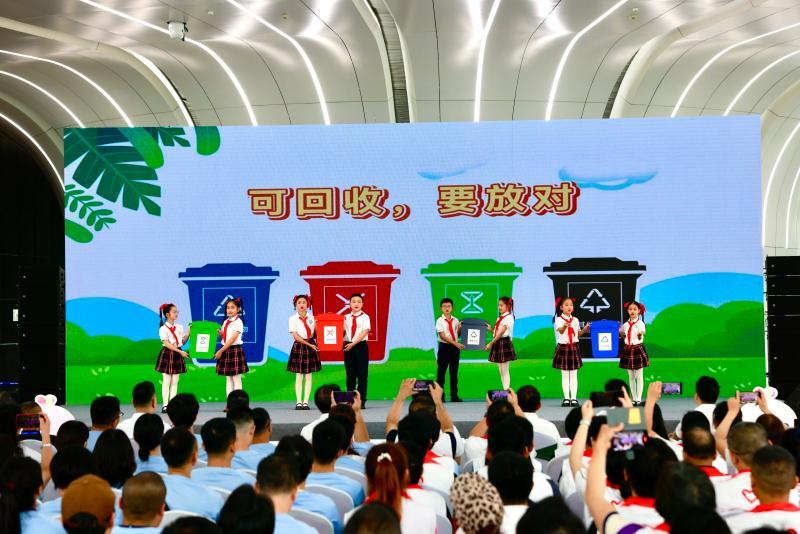 在启动仪式现场,欢快的暖场节目将垃圾分类知识融入律动节奏,用青春活力的舞蹈展示城市的绿美画面;来自越秀区大南路小学的同学们用粤剧形式唱响垃圾分类知识……活泼有趣的节目拉开了宣传周活动序幕。