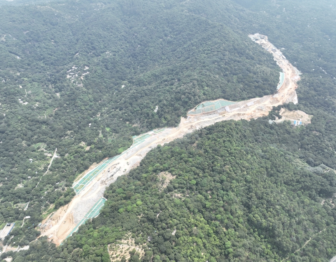 黄埔区科学城连接知识城快速通道(南段)工程(简称“科知通道南段项目”)南起外环路与外环A线交叉口,北至水声水库东侧,全长约6.24公里,道路红线宽度40米。工期1080日历天。