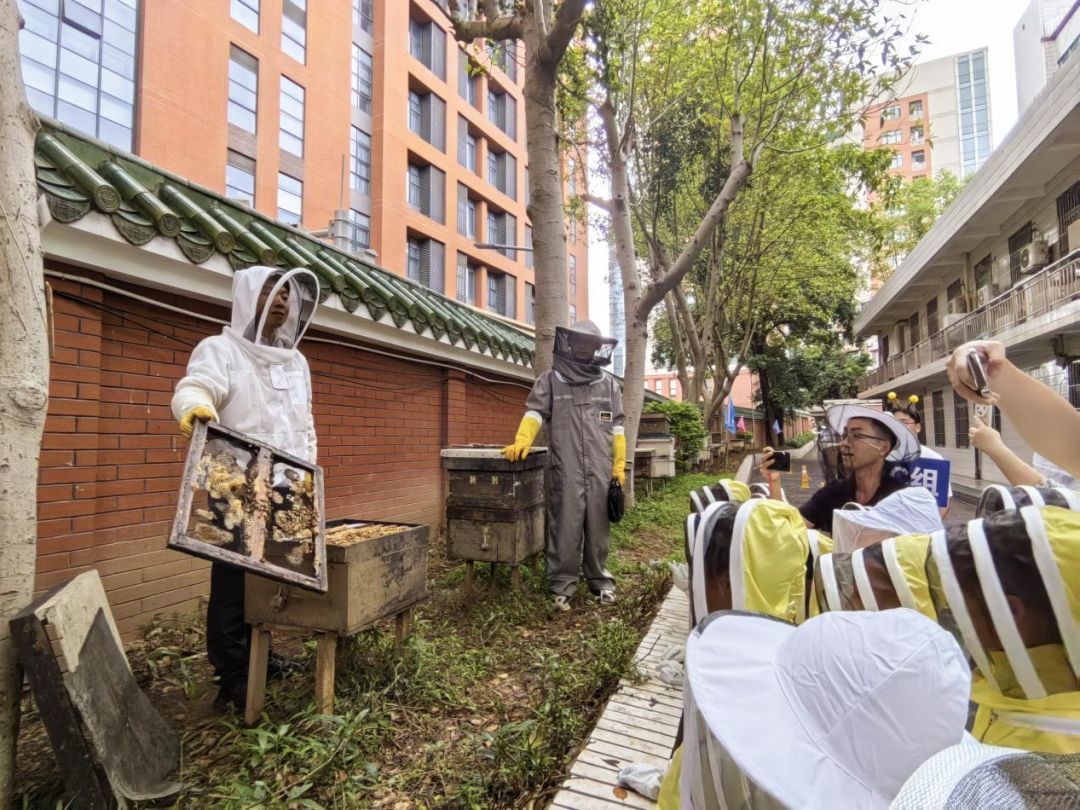 在互动体验环节,参与者穿戴专业防蜂服近距离观察蜂群活动。透过特制观察箱,蜂王、工蜂和雄蜂各司其职的场景清晰可见。“这是我第一次看到蜂王,它比普通蜜蜂大好多!”一位参与者惊叹道。活动现场还设置了蜂产品品鉴区,让市民亲身体验蜂蜜等蜂产品的独特风味。