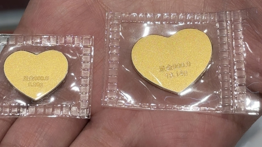 具有甜蜜寓意的爱心黄金,店家称保值又浪漫。