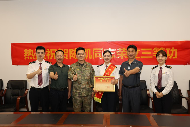 在现役军人陈凯家属所在单位广州南站会议室里,慰问组庄重地宣读了立功喜报,为家属佩戴上“一人立功、全家光荣”的绶带,并送上饱含心意的慰问品。陈凯的妻子手捧着金灿灿的喜报,眼中满是骄傲与激动地说:“这张喜报是我们全家最珍贵的礼物!感谢部队的培养,更感谢党和政府的关心与支持,我们一定会做好坚强的后盾,让陈凯在军营安心建功立业。”