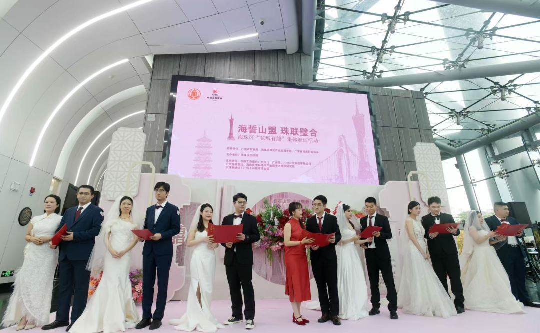 5月20日,广州市海珠区举办“海誓山盟 珠联璧合”520集体颁证活动,通过“水陆空”三位一体的浪漫仪式,为新人打造了一场独具特色的婚庆盛典。在广州塔顶、珠江水岸及星级酒店等场景中,新人们体验了传统与现代交融的颁证仪式,同时海珠区发布了婚庆线上平台“幸福模范”App和主题MV《一生一世》,并推出“天赐良缘卡”,全方位激活“甜蜜经济”。