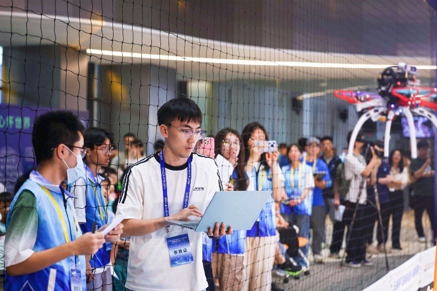 当天,浙江大学高飞教授团队进行无人机互动和表演,无人机仿若智慧的精灵,无论是规避突发障碍,穿梭于复杂环境,都游刃有余;来自广州云纵科技有限公司的新款无人机重磅亮相,观众可以沉浸式感受硬件设计、算法控制的独特魅力。