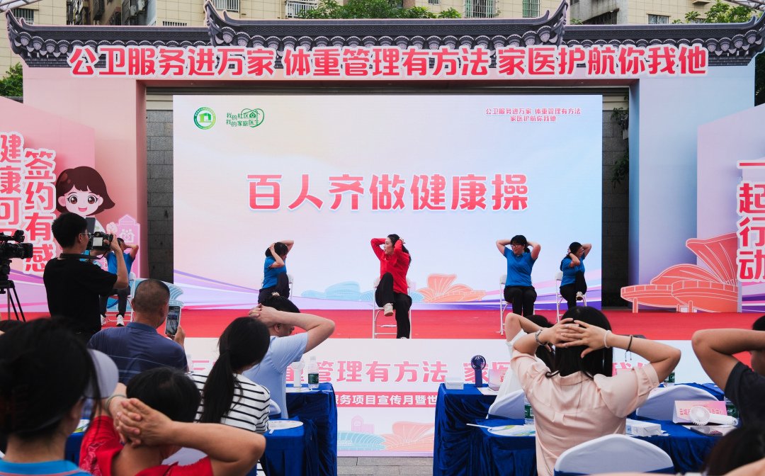 本次活动以“公卫服务进万家、体重管理有方法、家医护航你我他”为主题,通过花样游泳世界冠军面对面科普、白云名医音乐脱口秀减重教学、趣味运动会、基本公卫科普嘉年华、权威专科特色义诊等丰富生动的活动,吸引了全区24镇街约500名居民群众积极参与体验惠民服务,赢得丰厚奖品。