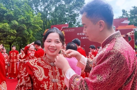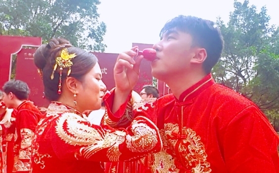 “我们不是复刻传统,而是让文化基因与现代价值观对话。”活动策划方表示。新人巡游路线更暗藏巧思,999米步道串联起5200米爱情跑道(全长5.2公里),将“长长久久”的民俗寓意与“我爱你”的浪漫表达巧妙结合,新人在体验仪式时,既能感受到文化的厚重,又能触摸到时代的脉搏。这种创造性转化、创新性发展,让传统婚俗成为年轻人表达自我的新载体,也是深化婚俗改革、弘扬文明新风的新动力。