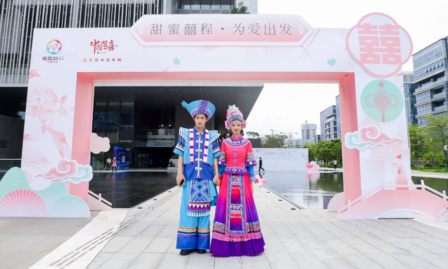 白云区在设计之都举办白云区第一届“甜蜜白云”婚俗文化活动,发布“甜蜜白云”品牌,开展56个民族婚服表演、传统岭南婚礼等活动,推动“甜蜜消费”从单一场景到全域生态升级。“越秀越爱”集体颁证、天河“流沙绘同心”沙画制作、花都区“爱情跑道”、南沙区“南湾·囍市”、从化“甜蜜集梦”等活动缤纷开展,为新人及亲友们献上一份份惊喜。