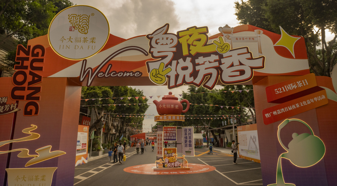 5月20日,“5·21”国际茶日暨广州荔湾首届夜茶文化嘉年华在广州南方茶叶市场兴叶路开幕。本届夜茶文化嘉年华以“粤夜悦芳香”为主题,融合市民互动、展贸经济、文化演艺、潮流美食与数字传播,让“夜茶”这一属于老广们的记忆,在年轻一代中再次被唤醒。