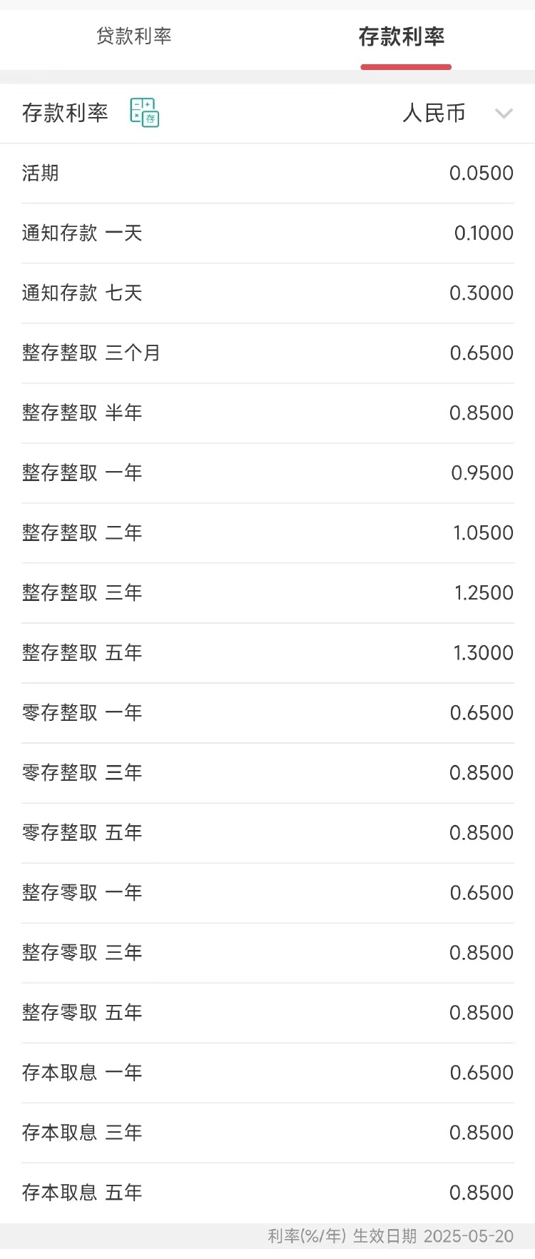 5月20日,工商银行、农业银行、中国银行、建设银行均发布消息,下调人民币存款利率,最大降幅25个基点。