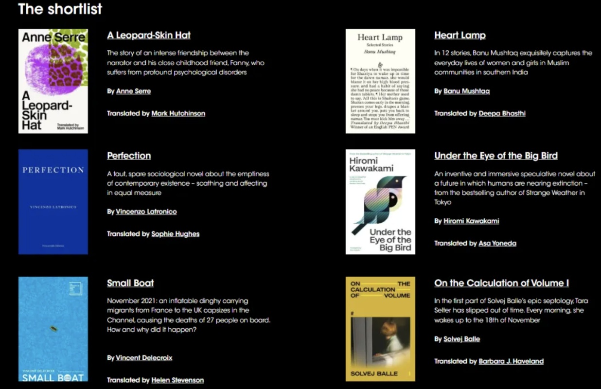 除了获奖小说,布克奖官网也公布了2025国际布克奖短名单,共有6本书入围,入围的作者和译者来自七个国家和地区——丹麦、英国、法国、日本、意大利、印度和苏格兰。6部作品涉及5种语言,其中2本译自法语,1本译自丹麦语,1本译自意大利语,1本译自日语,还有1本译自卡纳达语。