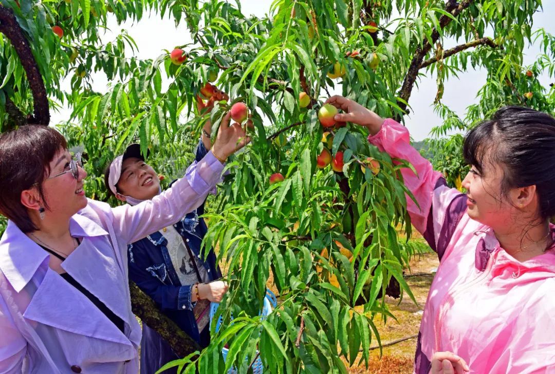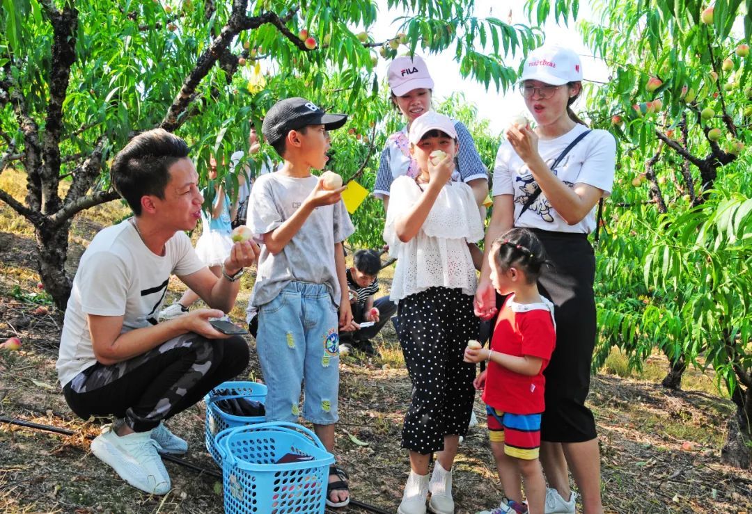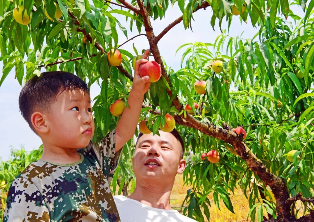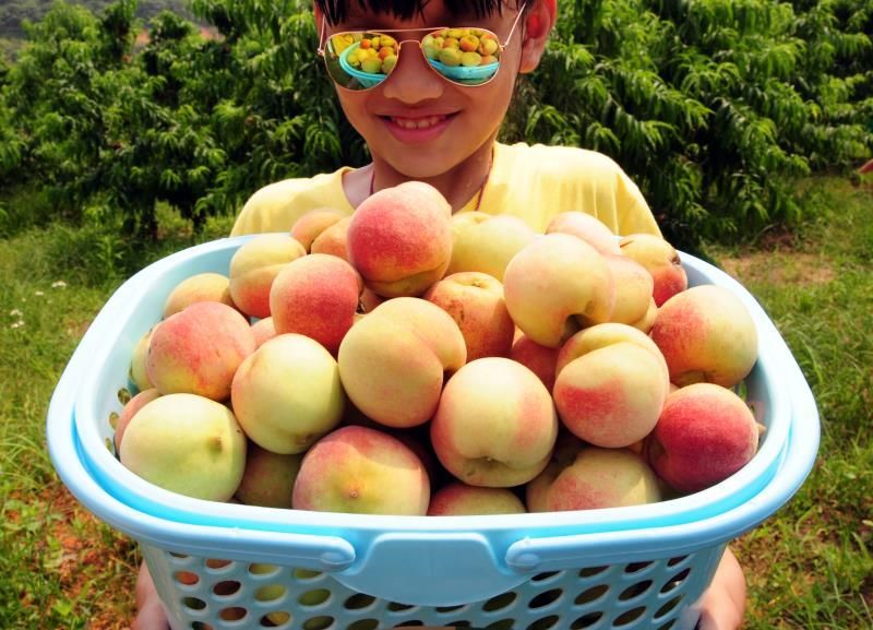 刚开园的第一个星期,这时树上桃子成熟的比例约三成左右,桃子口感以“脆甜”为主。