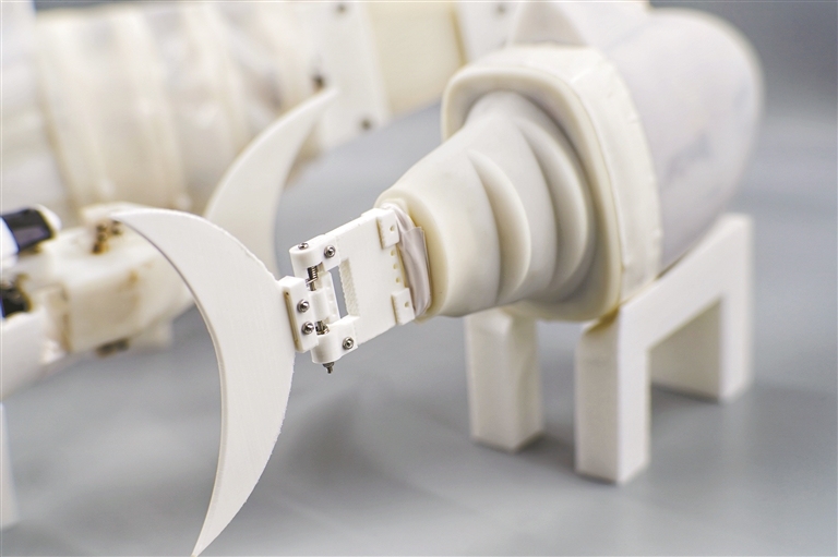 钟勇告诉记者,团队正在研究像大象鼻子一样的机械臂,以解决工业机器人刚性机械臂的不足。