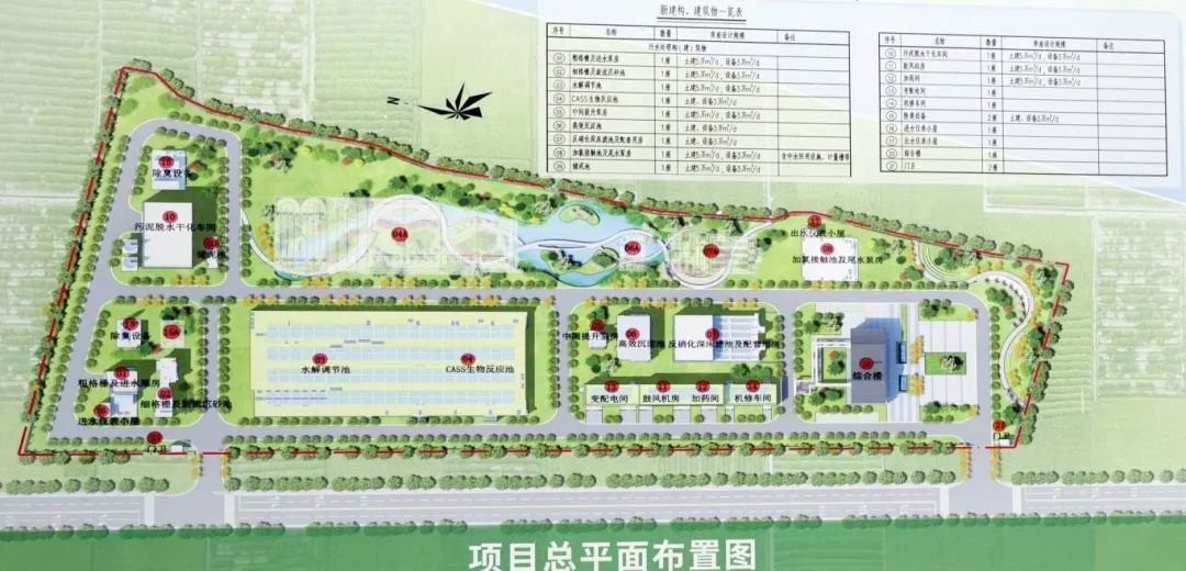 项目总体规模为5万m³/d,第一期设计处理规模为3万m³/d,第二期将提升至5万m³/d,建成后出水水质将按照《城镇污水处理厂污染物排放标准》一级A标准及《地表水环境质量标准》地表V类水标准的较严值(TN除外)执行,确保高标准排放。