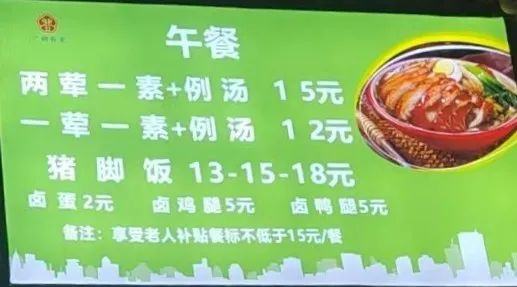 在政府补助下,珠江街户籍60周岁及以上长者可享受每人每餐10元的餐食补贴,本地户籍长者仅需自费5元就能享受到“两荤一素一汤”的午餐、晚餐,食堂还定期提供免费饭后水果。