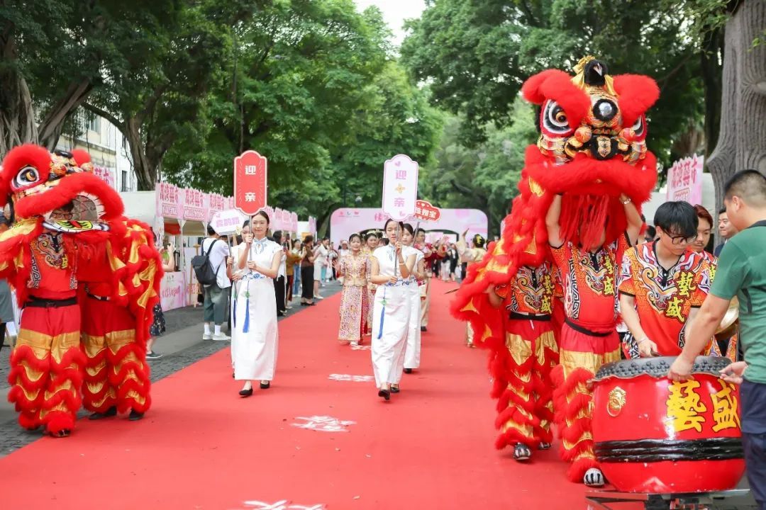 据悉,荔湾区通过探索“婚姻+经济”模式,积极搭建“政府搭台、企业唱戏、百姓受惠”平台,打造首届“荔湾囍市”甜蜜经济市集,为新人提供婚宴酒店、黄金首饰,婚纱摄影、婚礼用品等“一站式”优惠服务。本次甜蜜市集吸引了近20家企业的踊跃参与,政企合作共同助力荔湾“甜蜜经济”高质量发展。