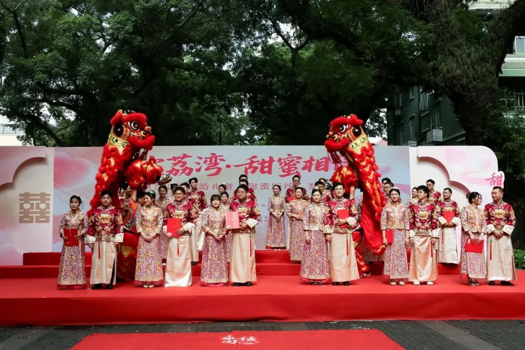 现场,20对新人漫步走过“十全十美繁花道”。在现场领导、嘉宾的见证下,荔湾区“甜蜜路线”发布会的帷幕正式拉开。