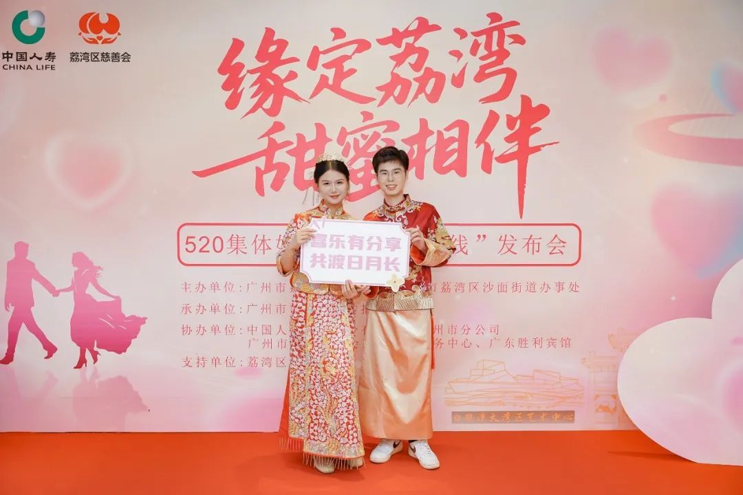 5月20日,荔湾区民政局联合沙面街道办事处、中国人寿保险股份有限公司广州市分公司、广州市新跨越社会工作综合服务中心、广东胜利宾馆在沙面举办了一场主题为“缘定荔湾·甜蜜相伴”520集体婚礼暨“甜蜜路线”发布会活动,为新人登记注入鲜活文化魅力。
