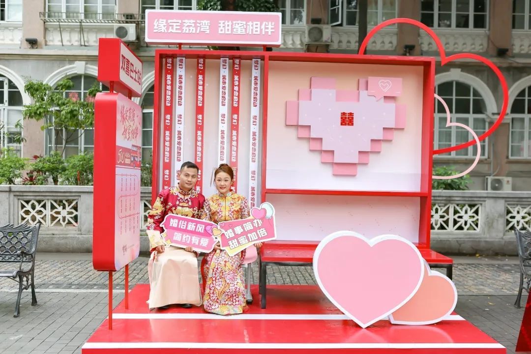 为推动甜蜜经济和婚庆产业高质量发展,荔湾区充分整合调动区内优势资源,围绕“甜蜜婚庆”和“爱的记忆”两大系列,“荔湾国潮民俗”“荔湾网红地标”和“荔湾婚俗传统”三大主题,重磅推出“珠联璧合金银玉器展示线”“心心相印荔湾福地畅游线”“百年好合互动体验服务线”“永结同心甜蜜婚庆服务线”“爱是永恒互动体验服务线”“良辰美景互动体验服务线”六大荔湾特色甜蜜打卡路线,打造具有荔湾特色的甜蜜路线打卡服务,为新人提供文化体验与经济价值相融合的“我爱荔”甜蜜服务。