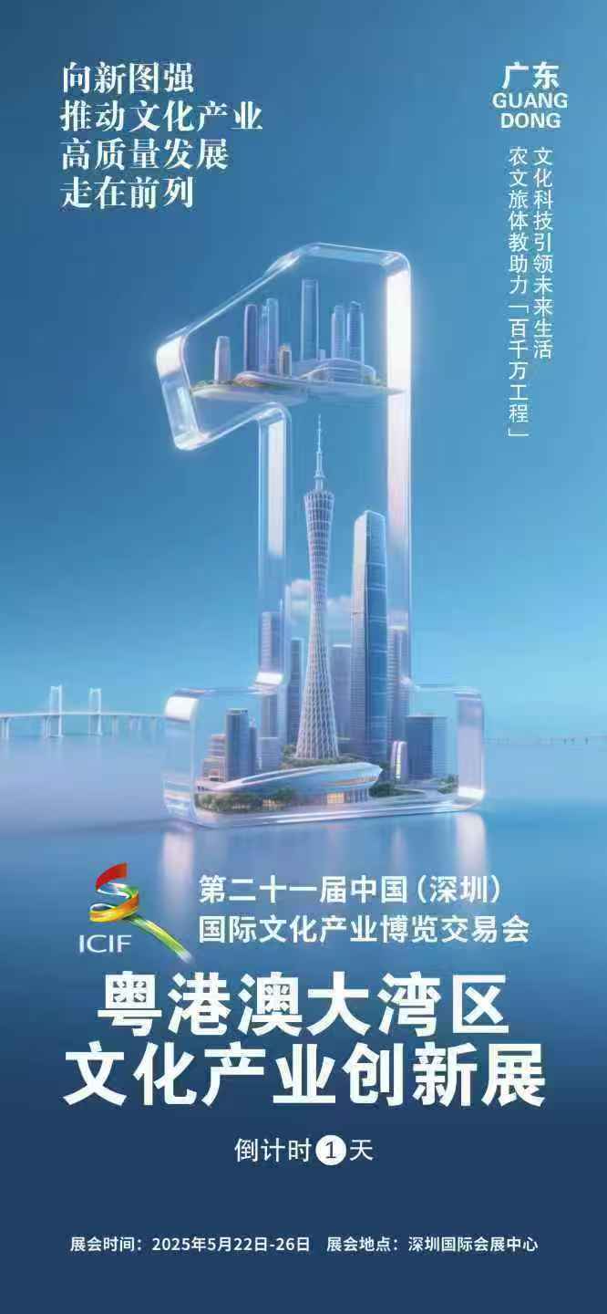 第二十一届中国(深圳)国际文化产业博览交易会(以下简称“文博会”)于5月22日至26日在深圳国际会展中心举行。广东展团组织全省21个地级以上市,协调香港、澳门及文化央企在“粤港澳大湾区文化产业创新展”(以下简称“大湾区馆”)集中参展。届时,还将现场发布重磅“政策包”,为6大领域分别制定引导扶持政策,推动新一轮文化产业高质量发展。