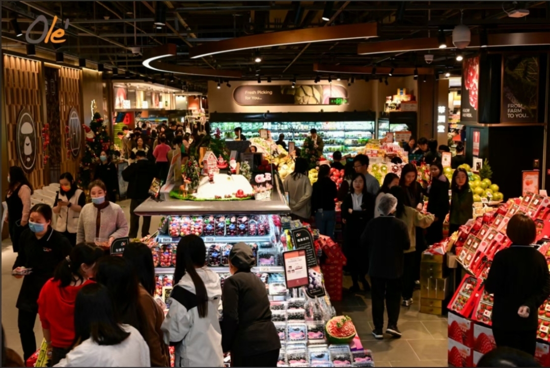 在餐饮品牌布局上,不仅引进CHIC 1699远洋私厨、白金酉玉、荣川菜、湘颂·国藩家宴、满陇山房·膏蟹年糕馆等,进一步强化了高端餐饮品牌矩阵,还引进BELLOCO倍乐、CAAN by OUR、往远GO FAR、湘椒、春台、荣山锅、吳系餐厅、Petit Oyster 叫嚎、黑手制面·GentlePasta等品牌,补充人气社交餐饮品类;此外,还补充了瑭所、去茶山、京都御握丸、Grid Coffee、MR.WALDEN COFFEE、超级碗FOODBOWL等轻餐及饮品类品牌,在L3引入大食代·美食广场,充分满足CBD客群的休闲及商务餐饮需求;原来位于B1层的“时集”也调改成为了olé精品超市,进一步满足商场周边高端住宅客群购物需求;在空间体验上,深度洞察消费者的情感和社交诉求,持续打造100多档有话题性的、出圈的主题场景和活动。