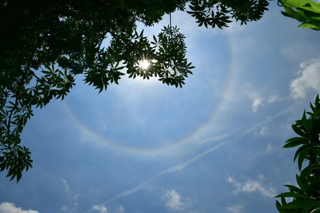 近期日晕在广州每隔一段时间就露脸。4月14日和5月11日,广州都曾出现日晕。气象部门提醒,公众拍摄时要注意保护眼睛,并做好防晒措施。