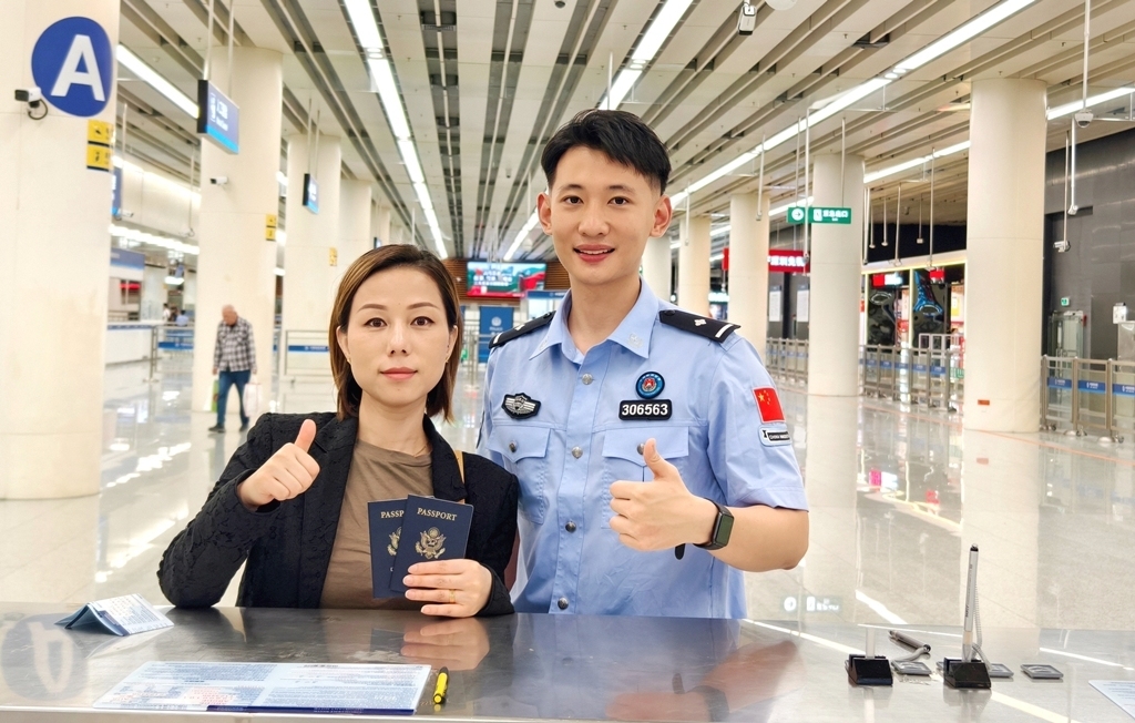 美籍旅客点赞皇岗边检站移民管理警察高效服务。