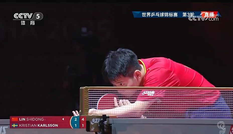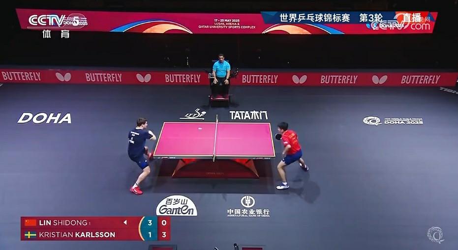 世乒赛男子单打第三轮,林诗栋对阵瑞典选手卡尔森。在输掉第一局后,林诗栋及时调整,以11-1扳平比分。此后的比赛林诗栋没有再给对手机会,以4-1(8-11/11-1/11-6/11-5/11-9)战胜对手,晋级16强。