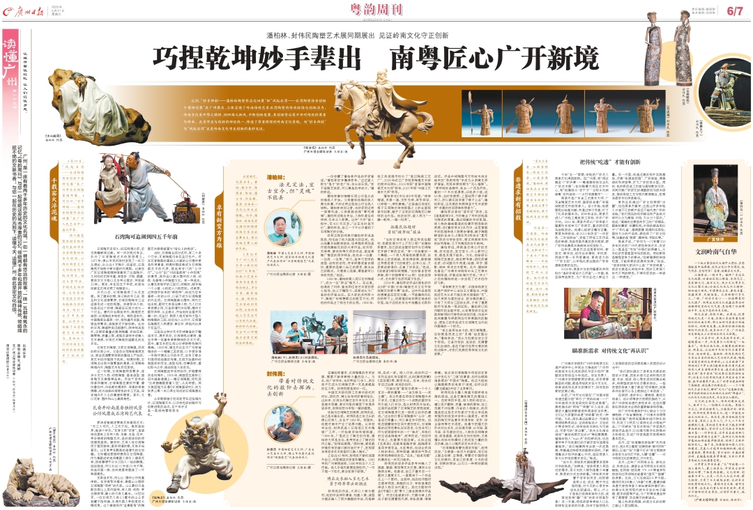 近期,“妙手神韵——潘柏林陶塑作品巡回展”和“风起石湾——石湾陶塑传承创新个案研究展”在广州展出,立体呈现了岭南传统艺术石湾陶塑的传承脉络与创新活力。岭南文化采中原之精粹、纳四海之新风,不断创新发展,其创新背后离不开对传统的尊重与传承。正是守正与创新的辩证统一,缔造了厚重辉煌的岭南文化景观。而“妙手神韵”与“风起石湾”正是岭南文化守正创新的美妙见证。