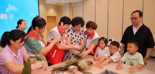 绿衣轻展,米香四溢。包粽子环节中,导师手把手传授“折叶、填米、捆绳”的诀窍,居民们纷纷化身“手工达人”,邻里围桌协作,笑语盈盈。“和邻居一起包粽子,感觉特别暖心!”带着孙子参与活动的刘奶奶笑着说:“孩子学会了传统手艺,还主动念叨着要把粽子送给独居的李爷爷,这就是‘小文明’撬动‘大和谐’啊!”一个个棱角分明的粽子,不仅包裹着节日的祝福,更串起“以粽为媒、以情为纽”的社区温情,生动诠释“邻里和睦一家亲,文明实践润无声”的理念。