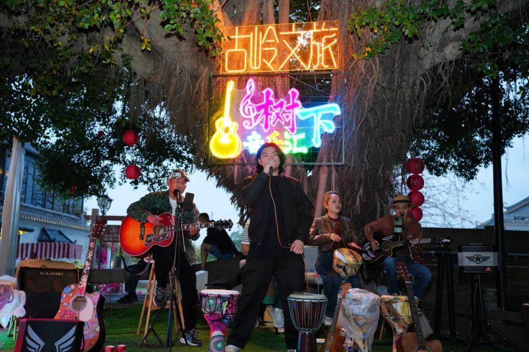 想要留住游客?不止一餐一宿。在豪哥夫妻俩的推动下,特色非遗体验、节庆活动不断上演,为大岭村增添了“文旅脉搏”。依托大岭村“文房四宝”中的玉带河,开发龙舟文化体验项目,让游客在传统水乡活动中感受岭南民俗;结合古村自然环境,打造大榕树下露天音乐会、篝火晚会,吸引年轻游客参与,既保留乡土气息,又增添时尚活力;联动周边艺术家和手工艺人,定期举办非遗文创展销,开设艺术非遗公益课,推动村民增收与非遗市场化……一系列的“文旅实践”正激活着这座百年古村的新活力。