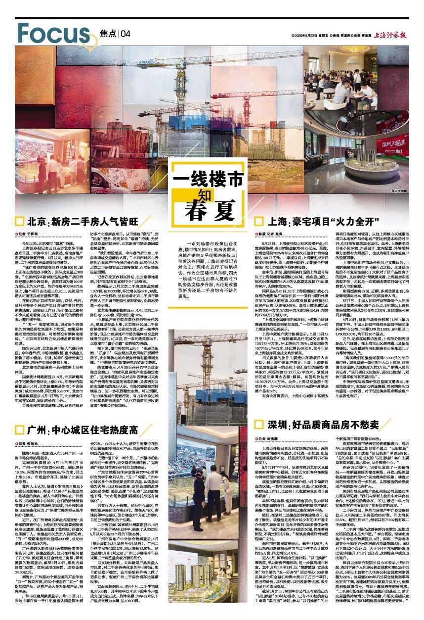 一系列稳楼市政策出台实施,楼市情况如何?购房者需求、房地产销售又呈现哪些新特点?带着这些问题,上海证券报记者对北上广深楼市进行了实地探访。作为全国楼市风向标,四大一线城市在这由春入夏的时节购房热度稳步升温,无论是改善型新房还是二手房均有不错的表现。
