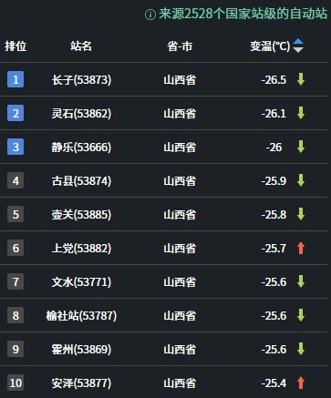 在冷空气和降雨的双重打压下,今天,北方多地气温“大跳水”。特别是在山西周边一带,截至14时,上述地区普遍出现了12-26℃的剧烈降温。像是山西长子,降温可以说是十分“惨烈”,昨天下午最高气温超过35℃,今天下午暴跌至10℃左右,体感仿佛从盛夏打回到初冬。