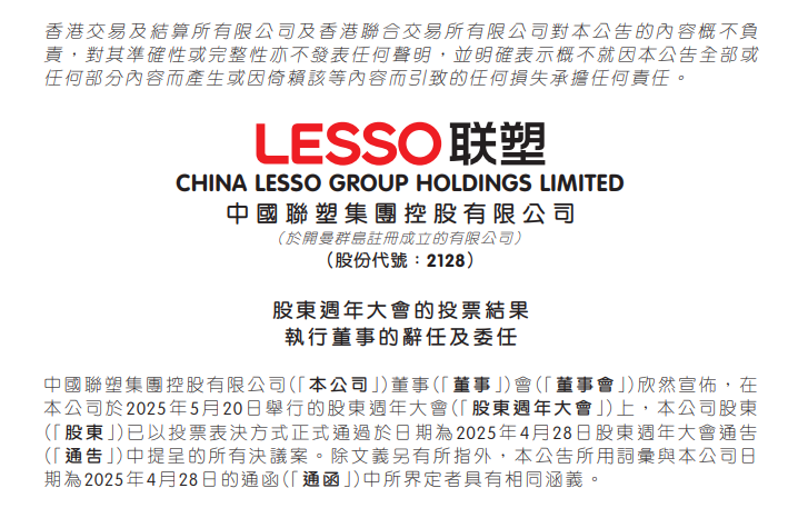 “接棒”林少全的是中国联塑的“企二代”。公告透露,公司创始人黄联禧、左笑萍的儿子,及左满伦的外甥黄展雄,日前已于公司股东周年大会上获得批准被委任为执行董事,且任职从2025年5月20日起,任期为3年。
