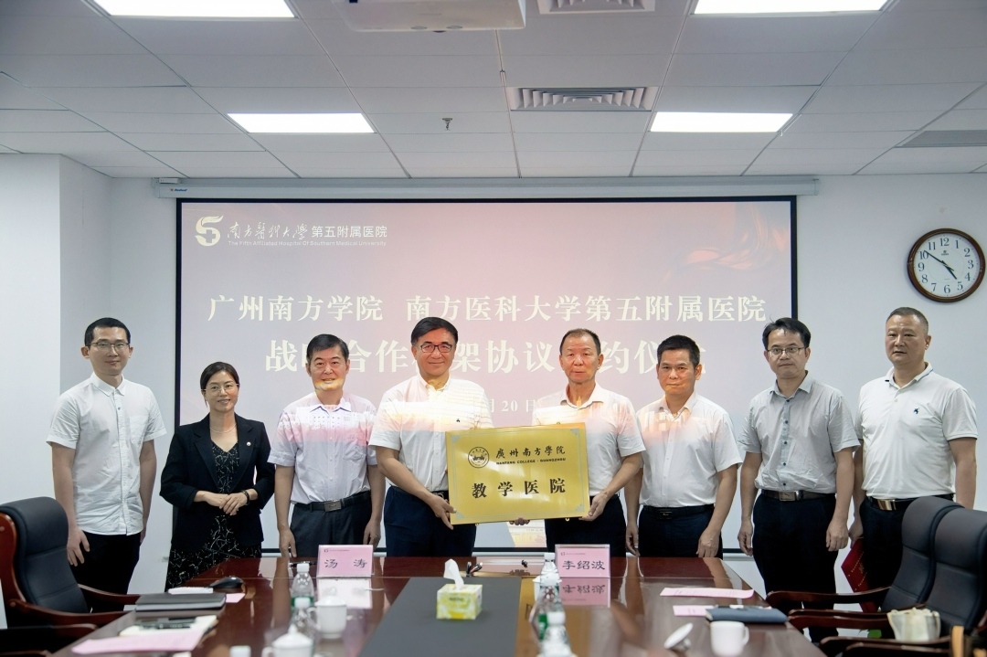 日前,广州南方学院与南方医科大学第五附属医院(以下简称“南医五院”)战略合作协议签约仪式在南医五院举行。根据协议,双方将在人才培养、医教融合模式创新及产学研体系建设等领域展开全方位合作,共同推进医疗教育协同发展。