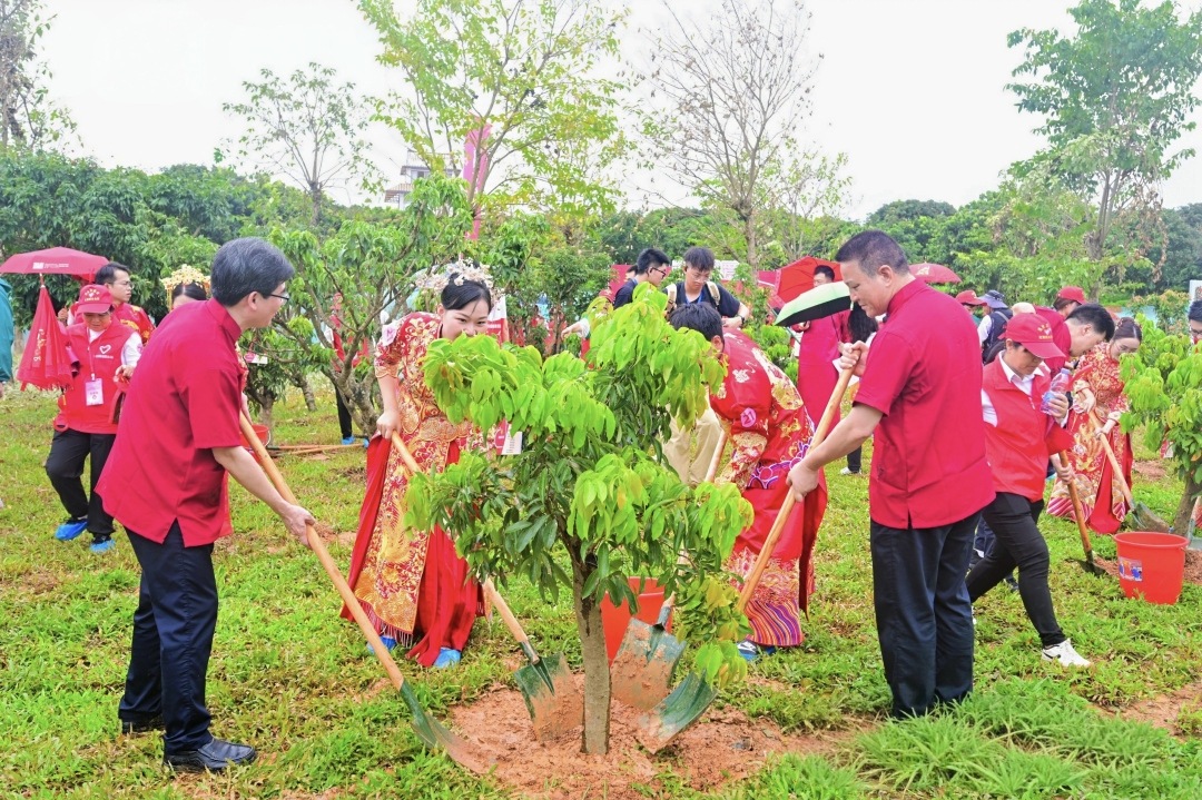 5月20日前后,广州、惠州、江门、潮州等地依托山水资源禀赋和文化底蕴,打造特色青年集体婚礼分会场,全省各地累计开展集体婚礼暨“有喜事 来种树”活动33场,超1000对新人携手种下象征爱情常青的520“同心树”。“亲手种下那棵象征着我们的幸福树时,我的内心十分感动,看着它扎根土壤,就像看着我们的承诺在此刻生根发芽,见证我们未来的每一个春夏秋冬。”参与植树的新人李飞洋说。