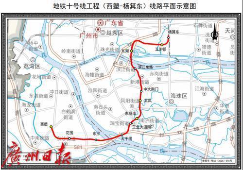 地铁十号线工程(西塱-杨箕东)线路平面示意图。