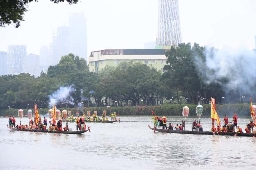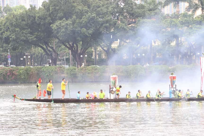 小e了解到,二沙龙舟在“采青”之后,将进行多次训练,并于农历五月初一至农历五月初五期间前往天河、黄埔等区的各个村落探亲趁景,并在五月初五当天举办端午正景“招景”。