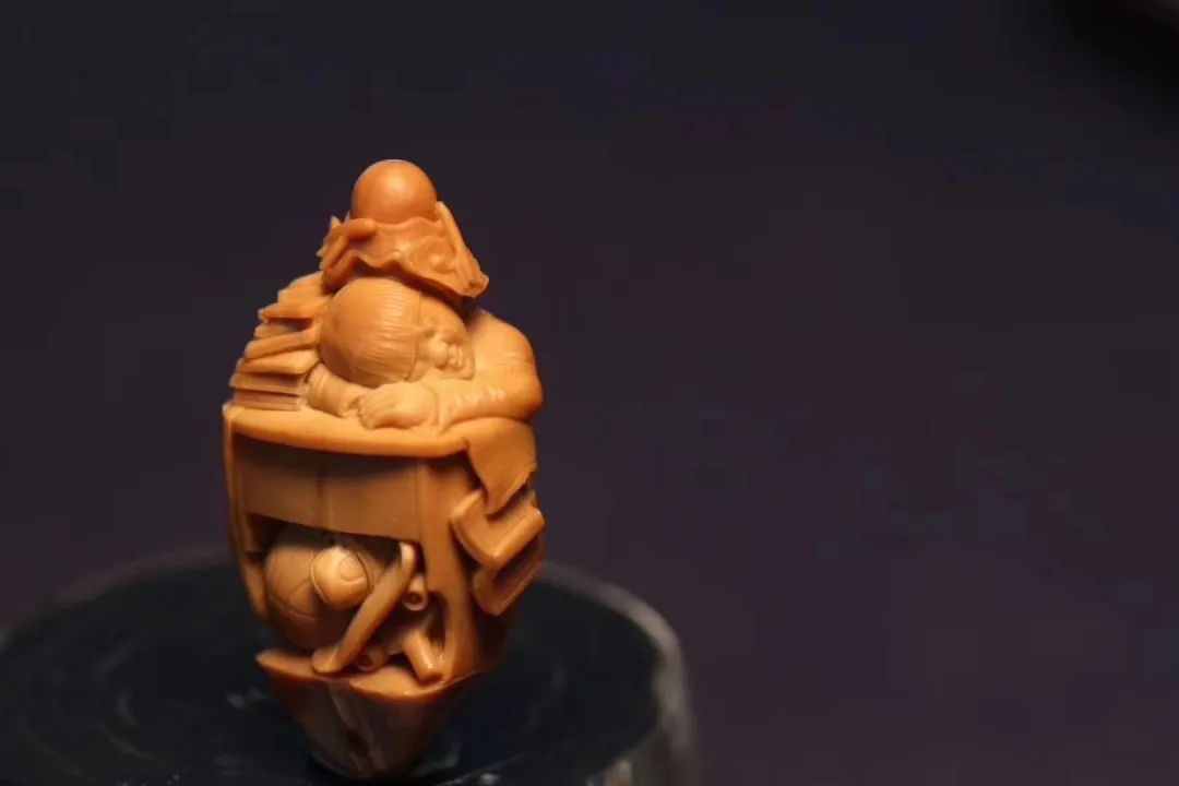 每一类艺术都是相通的,对于美术专业毕业的彭德平来说,从皮具设计到核雕的转型难度并不算大,专业技能加上过人的天赋,他很快上手雕刻这门技艺,并创作出雕刻成熟的作品。