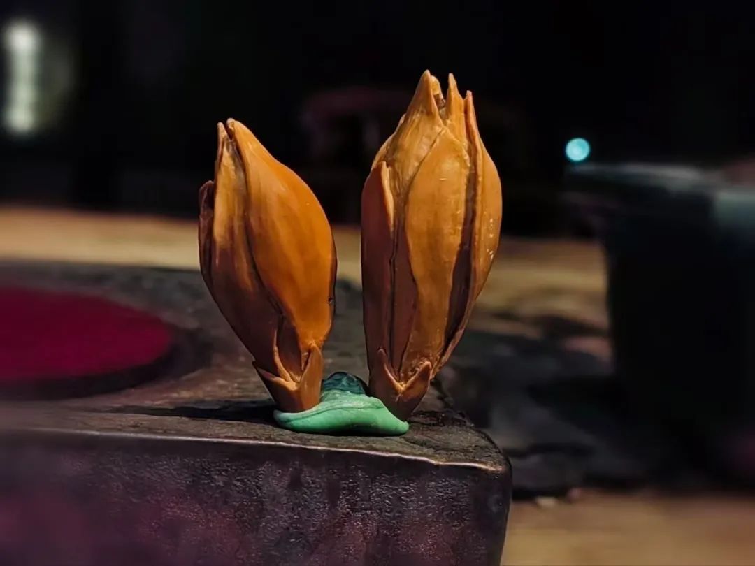 彭德平介绍,该系列作品一经推出就吸引了3000多名粉丝,共售出100多套。原本只有200多元成本的橄榄核,经过他的精雕细琢,市场售价可达1.2万元,价值增长60倍。彭德平的作品为核雕艺术注入现代审美活力,重新定义核雕的艺术价值与市场潜力。