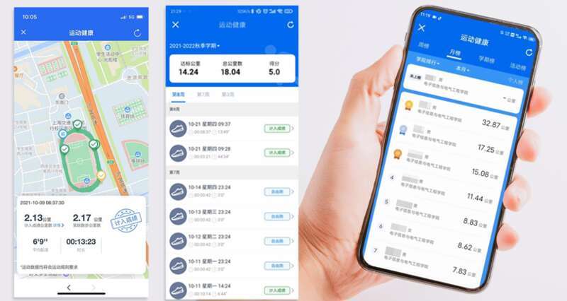 手机APP可以实时记录每一个学生的体育锻炼情况。上海交大供图